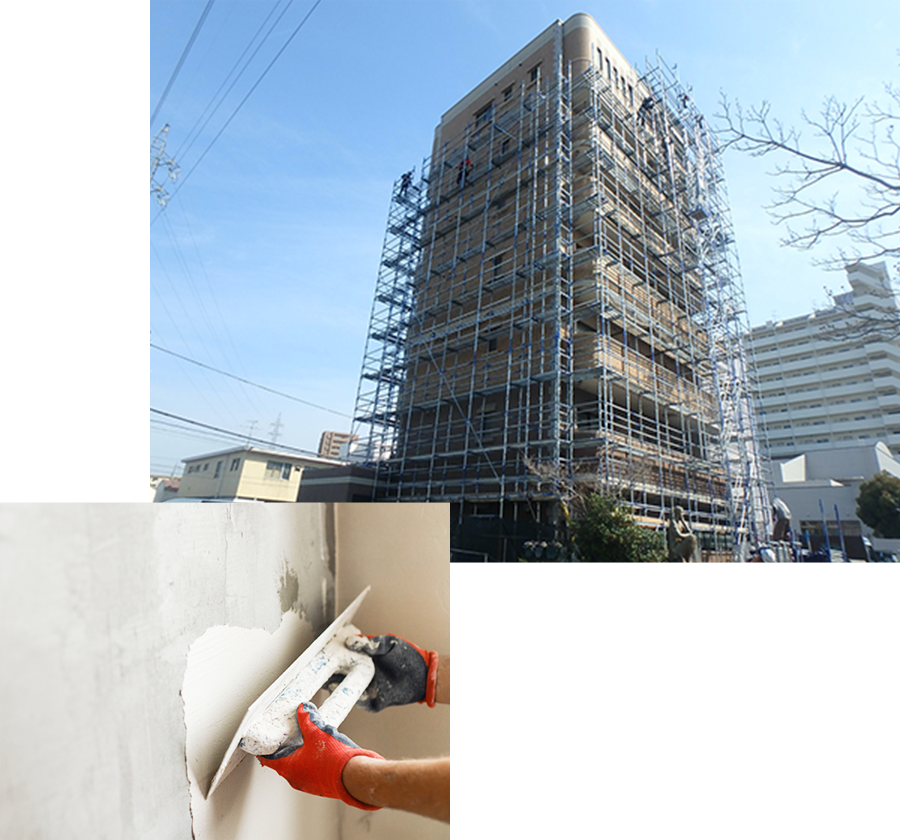 橋梁や教育施設などの公共施設、県営住宅、マンションなどの大規模修繕工事のほか、戸建住宅・アパートの細かい修繕工事、外構工事まで幅広く施工を行っております。